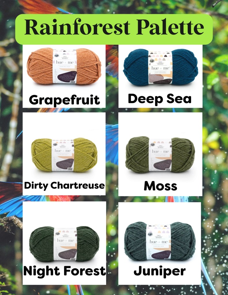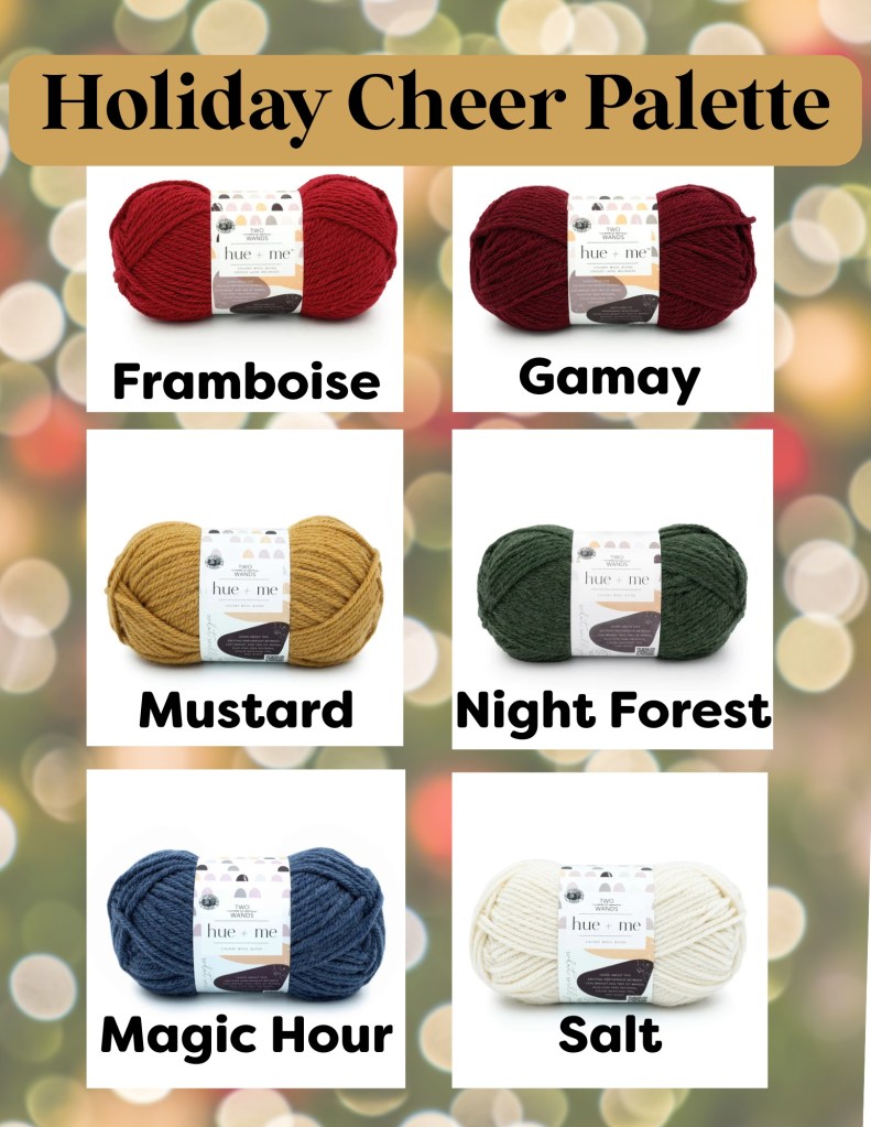 To celebrate this wonderful holiday project, I took the time to look back on some of the color palettes that didnt make the final sample and color palettes that I daydreamed for future versions of this piece! Whether you are a neutral lover or brush your teeth with the rainbow, these palette options cater to all tastes in color. The best part? This incredible chunky/bulky base Hue and Me from Lion Brand Yarn and Alexi Tavel of Two of Wands. Each colourway includes such depth and range that the palette possibilities are truly endless. I had a hard time even narrowing it down to six palettes! So, without further ado, the palettes!